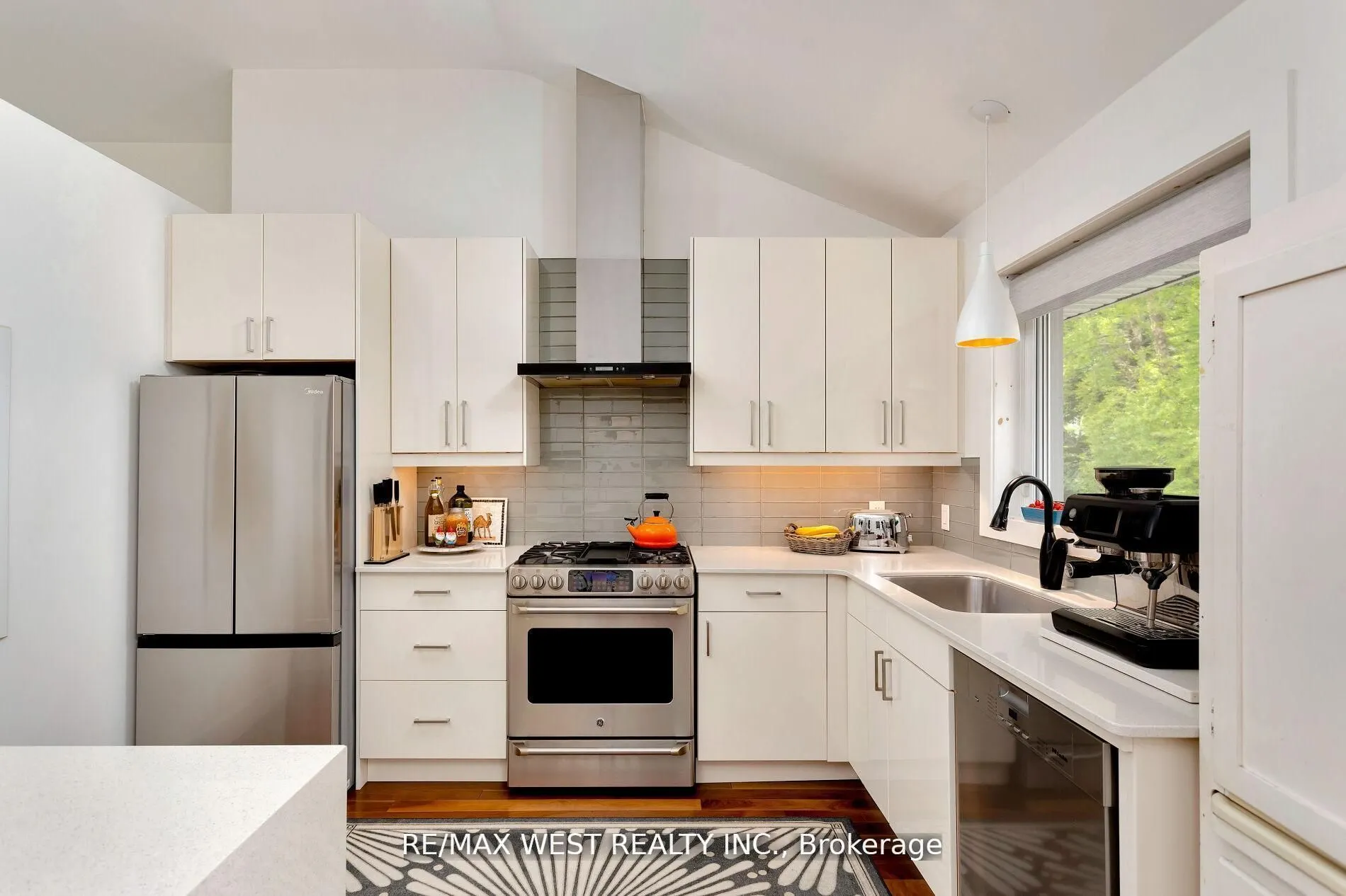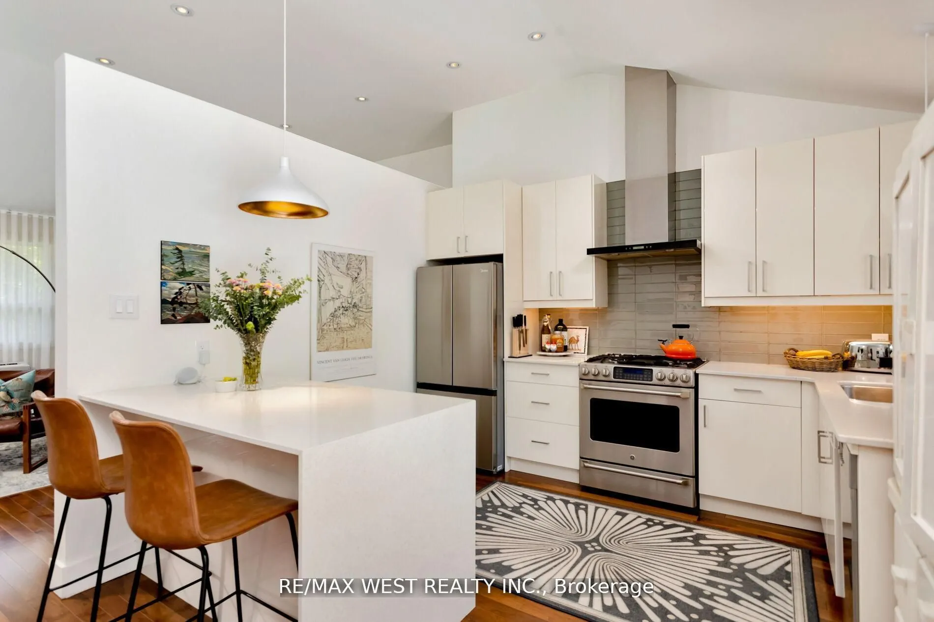 The Ultimate Family Haven in Coveted Etobicoke. Nestled on a quiet private court off a dead-end street, this rare gem offers the perfect blend of suburban peace and urban convenience. With mid-century modern touches, this renovated home features three spacious bedrooms and two bathrooms. The open-co...ncept living/dining area is filled with natural light, boasting vaulted ceilings, expansive windows, and a striking stone fireplace. The upgraded kitchen includes quartz countertops, a sit-up peninsula, and ample storage, with oversized patio doors opening to a lush, private backyard ideal for entertaining or relaxing. The lower level features a large rec room with a cozy wood-burning fireplace and an oversized double garage for extra storage and ease. Enjoy top-rated schools: Our Lady of Sorrows, Norseman Junior, Etobicoke School of the Arts, and Bishop Allen Academy. Kids can safely play right outside on this traffic-free court- ride bikes, shoot hoops, or play street hockey in peace. Just a 10-minute walk to Royal York Station, this home is steps to The Kingsway's charming shops and restaurants, with easy access to the Gardiner, 427, and 401- downtown or out of town in minutes. Set on a wide, tree-free lot, the home offers exciting possibilities: a future addition, full renovation, or even a backyard pool. Move in and enjoy or take over the existing architectural plans to bring your vision to life. This is a rare opportunity to own a home in one of Etobicoke's most desirable, family-oriented communities.